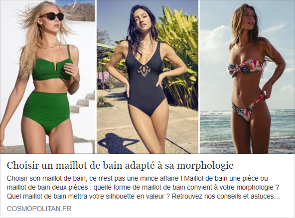 Choisir son maillot de bain, ce n'est pas une mince affaire ! Maillot de bain une pièce ou maillot de bain deux pièces : quelle forme de maillot de bain convient à votre morphologie ? Quel maillot de bain mettra votre silhouette en valeur ? Retrouvez nos conseils et astuces pour être une bombe sur la plage !